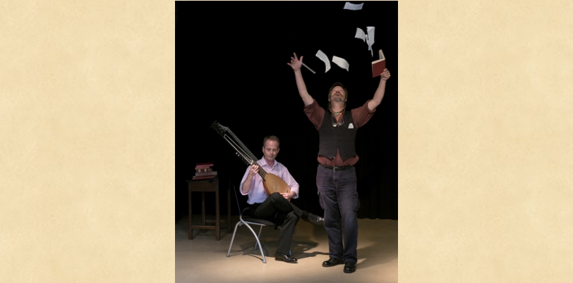 Een man met een grote verzameling boeken, dichtbundels en muziek. Een man met een fascinatie voor vroeger tijden, liefde voor de kunsten en een schat aan kennis. Een man die staat te popelen om dat alles met ons te delen. Hij bekijkt de ene bundel, bladert door de ander, springt op en ... vertelt. Vergezeld door een zangeres en een luitist trekt hij het publiek mee, de levens in van twee buitengewone 17e-eeuwers.